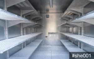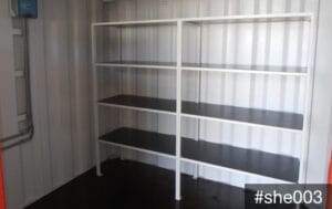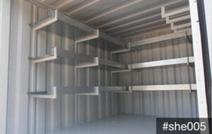 On request, we equip containers with various types of prefabricated shelves, racks, hangers and other storage equipment according to the client's wishes. The configuration (number, dimensions, material) of shelves and racks is optional.