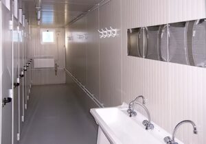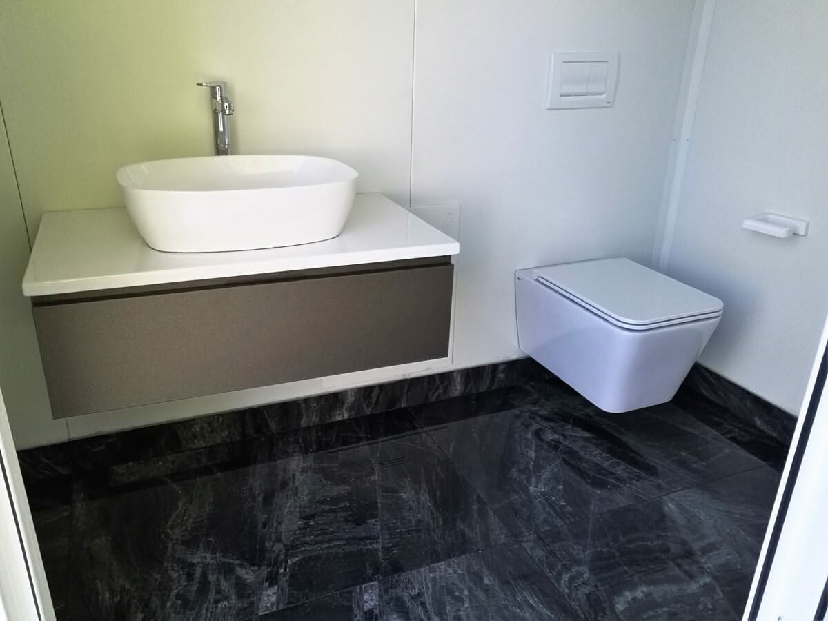 Sanitárne kontajnery sú prefabrikované modulárne riešenia určené pre toalety a hygienické priestory. Môžu fungovať ako samostatné jednotky alebo byť integrované do kontajnerových zostáv určených pre kancelárie, šatne, ambulancie, jedálne, školy či rekreačné zariadenia. Konfigurácia sa vždy prispôsobuje potrebám používateľa.